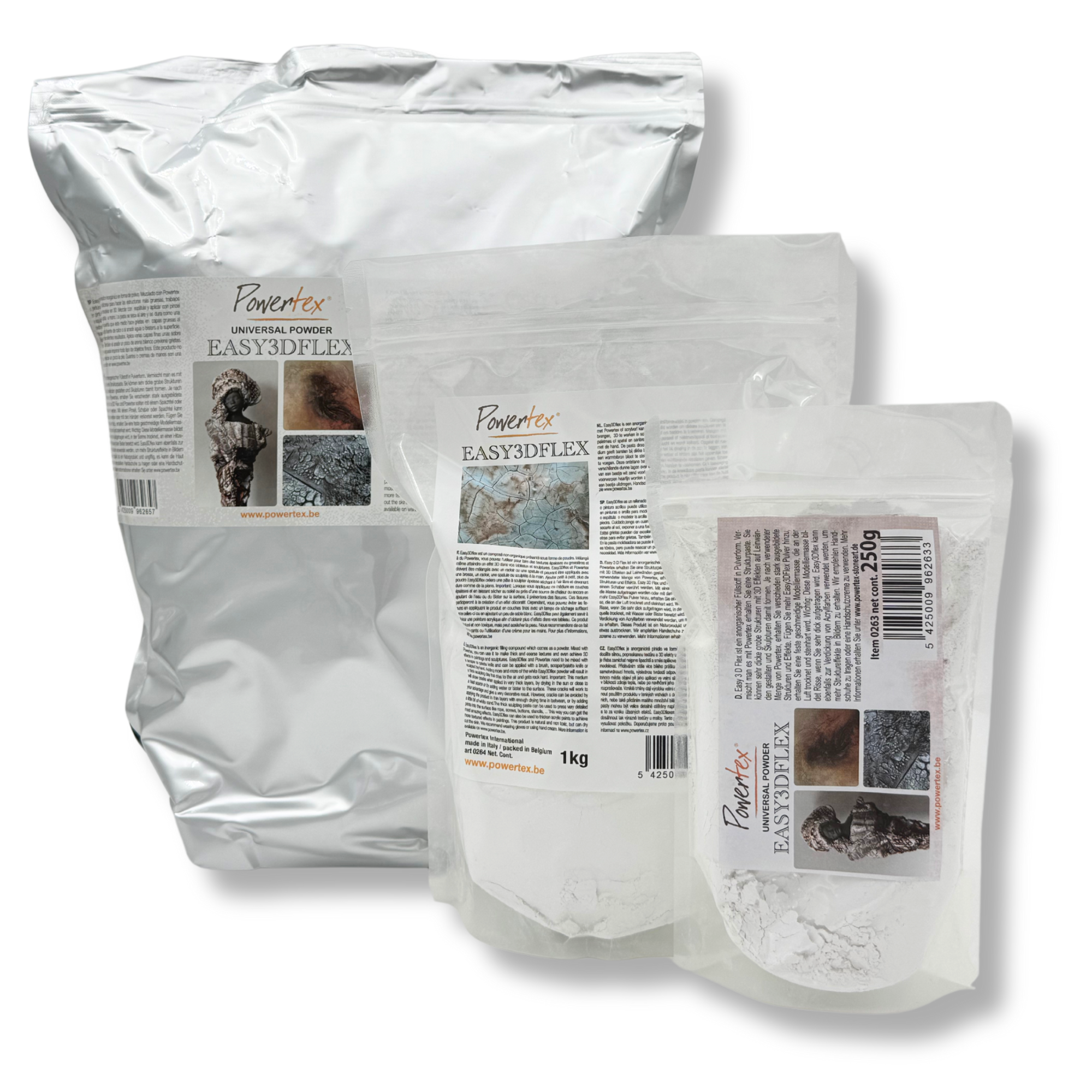 Easy 3Dflex is a must have art material for Mixed Media artists. Together with Powertex one can create unique textures in paintings and sculptures.